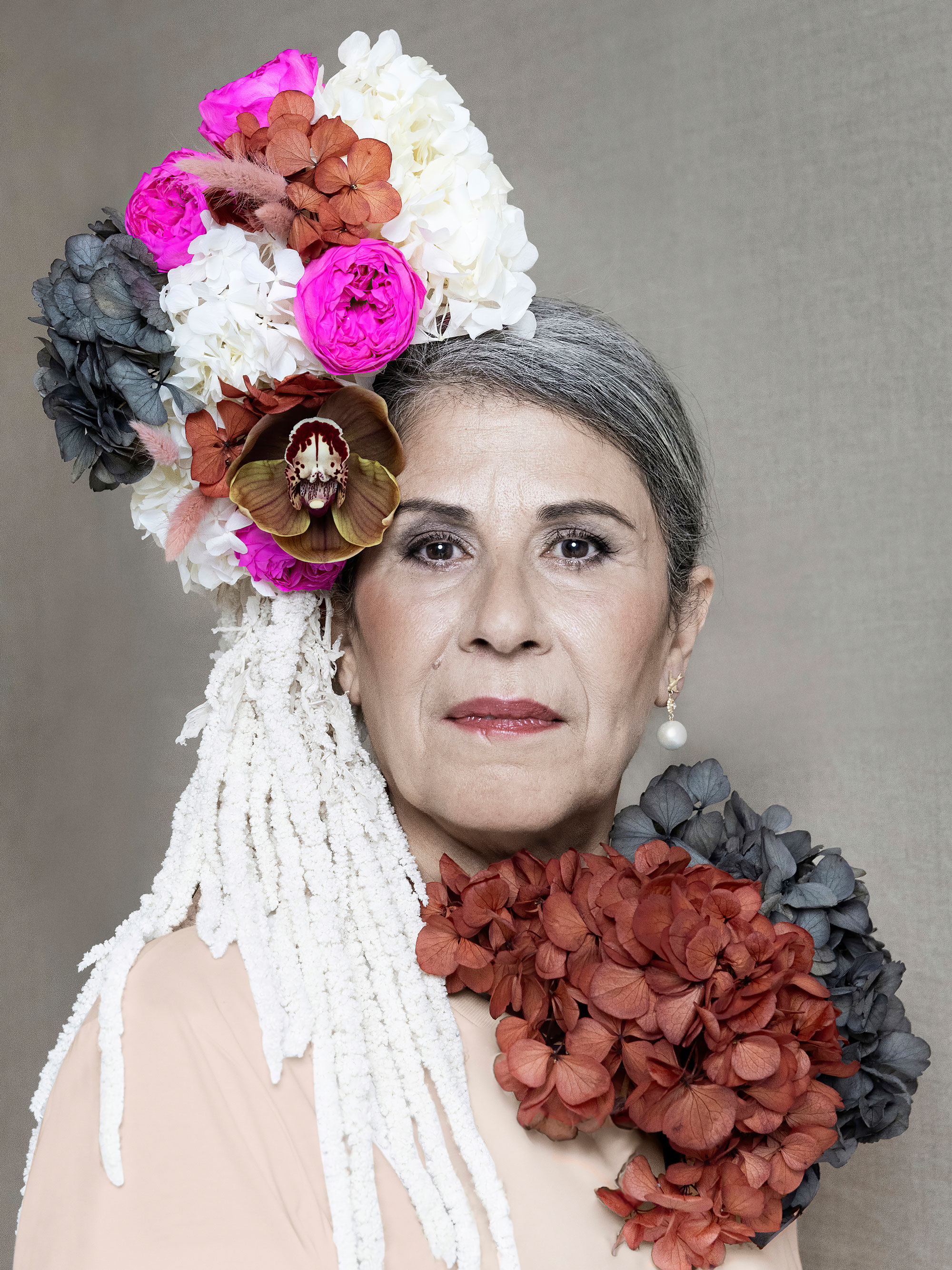 Fotograf Stine Heilmann har portrætteret kvinderne, der er stylet med blomsterkreationer af Annemette Trolle fra Blooming og smykker af Edith Hegedüs.