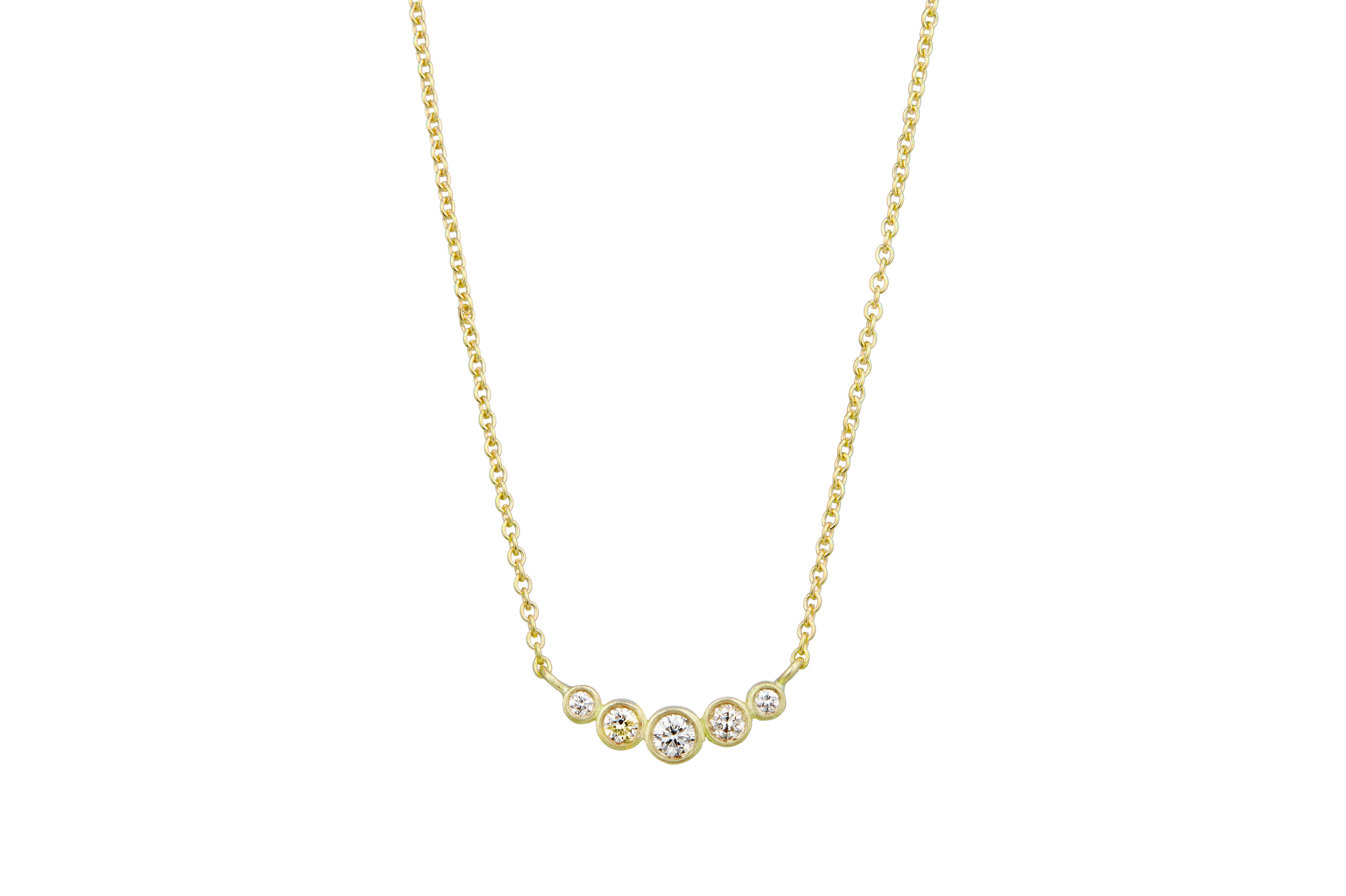 Halskæde i 18kt genanvendt guld med 0,13ct Top Wesselton VS brillanter i excellent cut. Kæde 42cm. Håndlavet i Danmark.